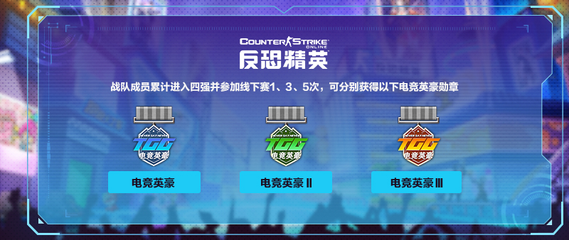 四强战队成员除芯片奖励以及<电竞英豪>喷漆外,根据累计进入四强并参加线下赛次数(1次、3次、5次),还可分别获得以下电竞英豪系列勋章哦!